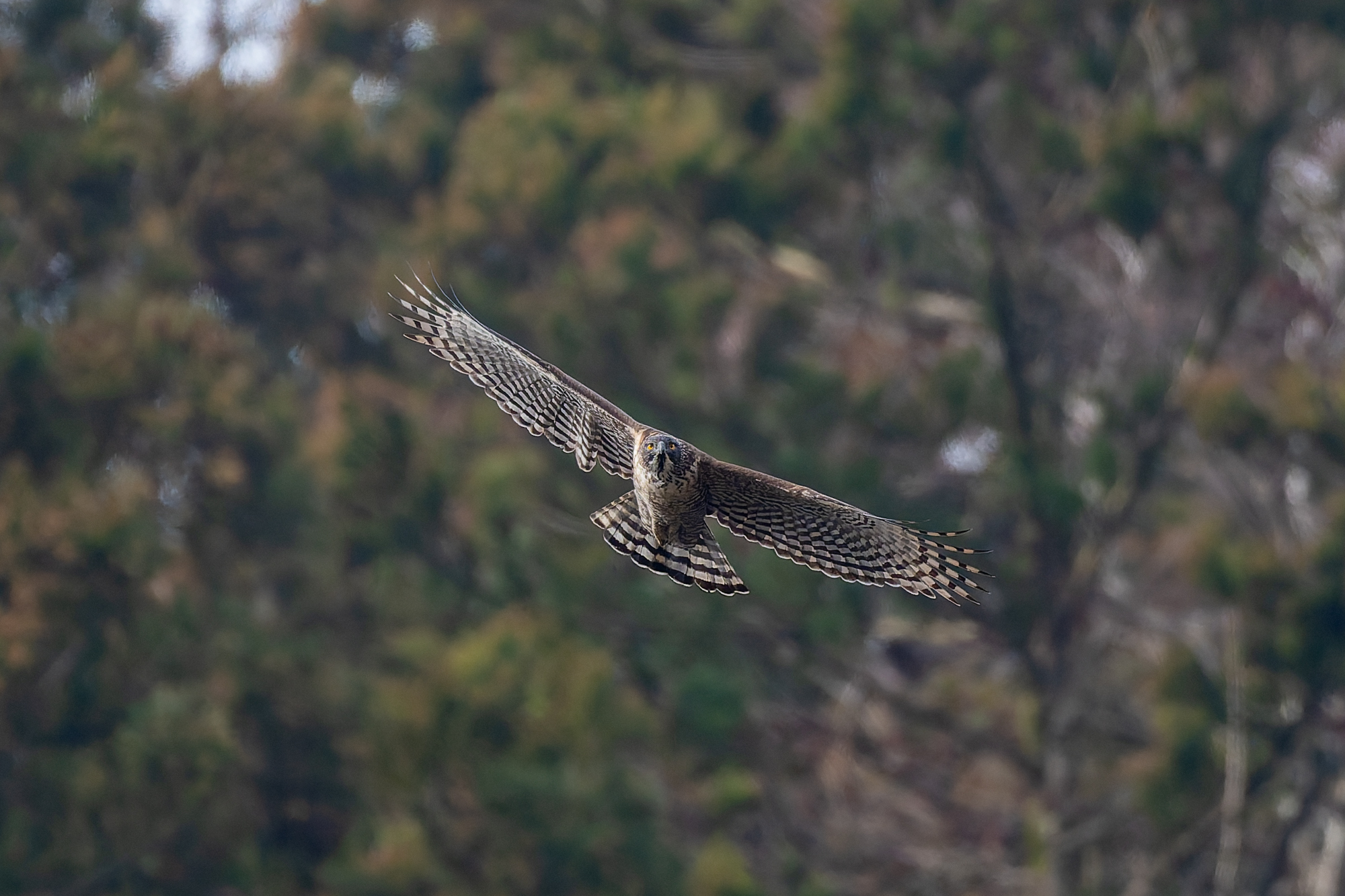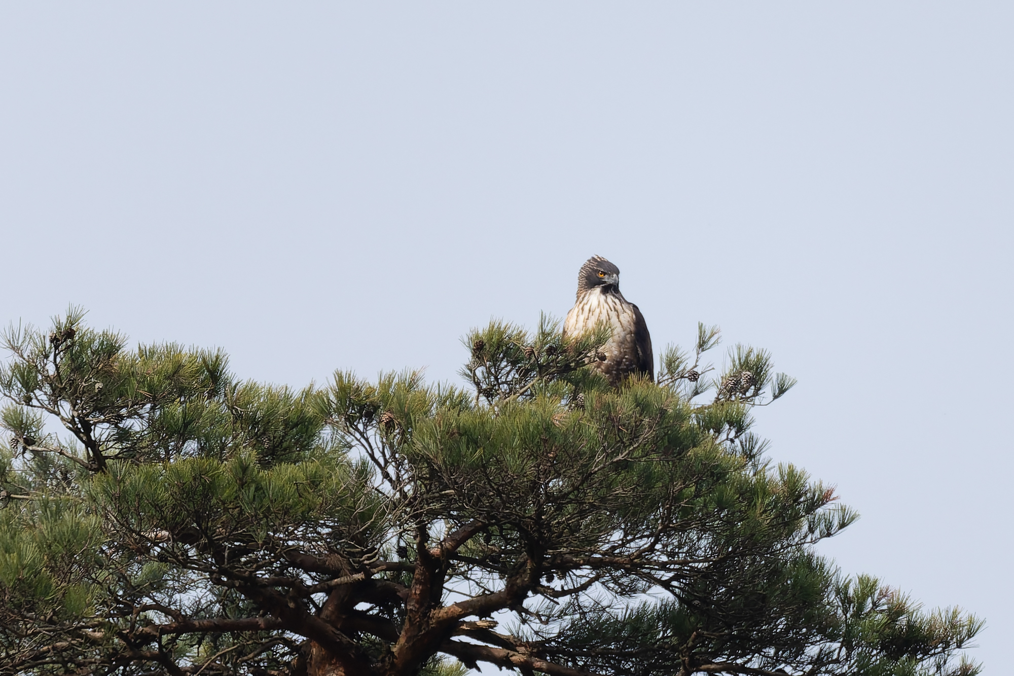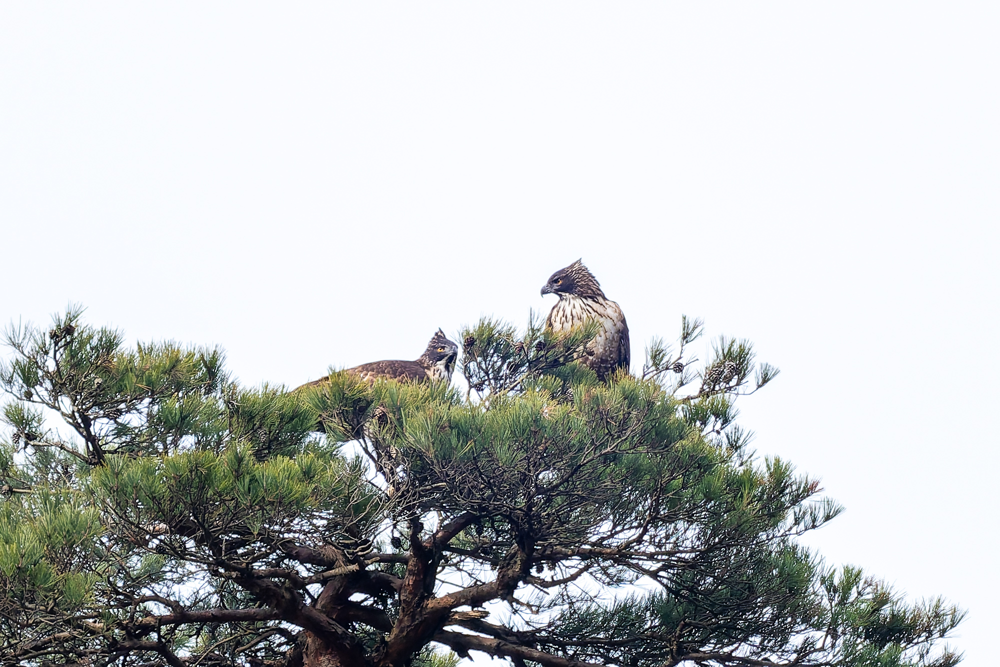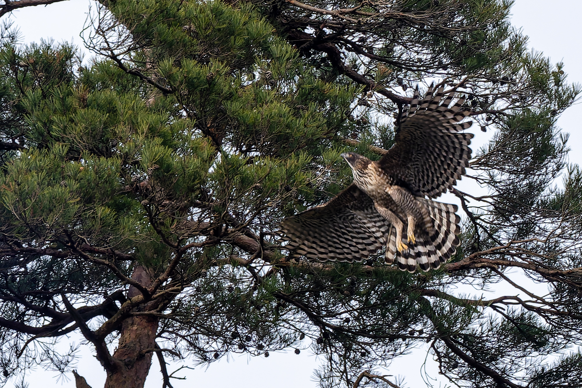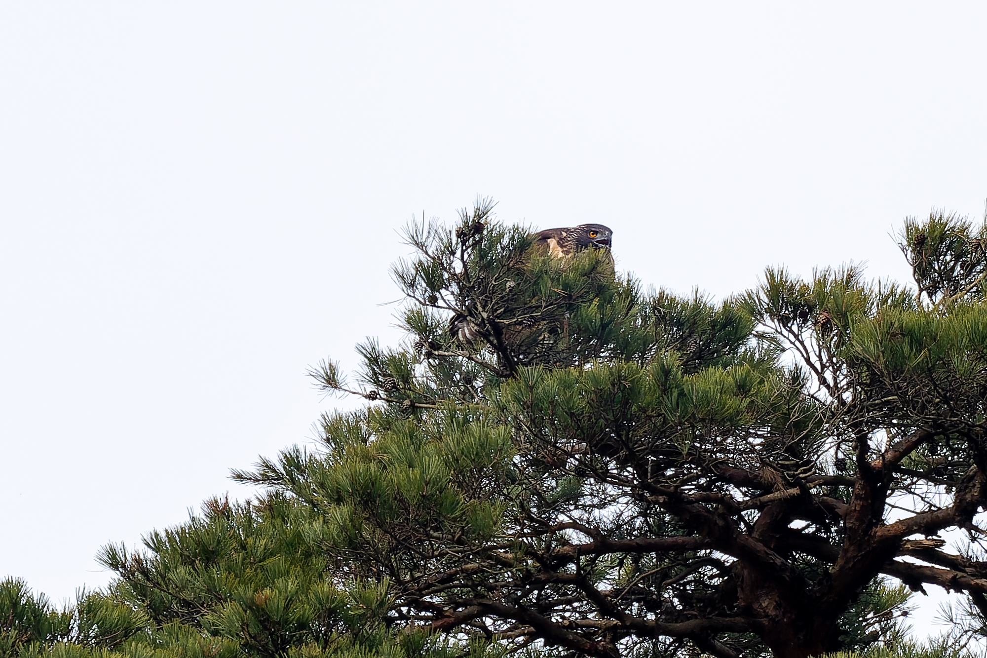 photocb 野鳥観察2026 2026年2月24日 2026年2月28日 クマタカ、オオタカ、トビ メスがオスに鳴いている クマタカはまだ繁殖行動が続いている。この時期が最も観察しやすい。 オスが来た クマタカの交尾 クマタカペア 先にオスが飛び出した オオタカが、 稜線の上を飛ぶ。飛び方は、滑翔と羽ばたき、大きさからハイタカかオオタカ。不鮮明だが、写真観察してオオタカかな? オオタカ オオタカ オオタカ メスが交尾の松から飛び出す しばらく交尾の松にとまっていが、飛び出し、山腹を飛んで稜線に消えた。 横縞のタカ斑が美しい 枯松にとまったオス 狩りから帰ってきたメス クマタカメス