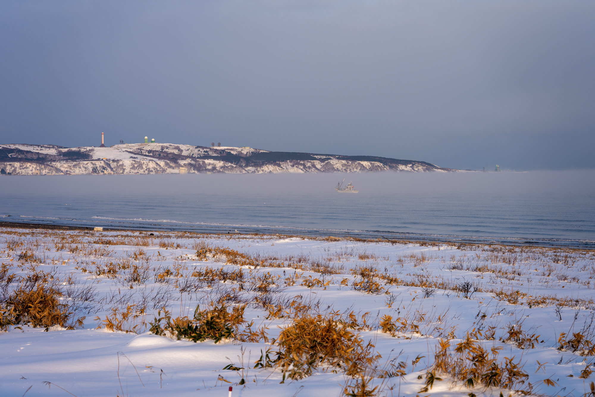 朝霧の宗谷へ向う海岸線