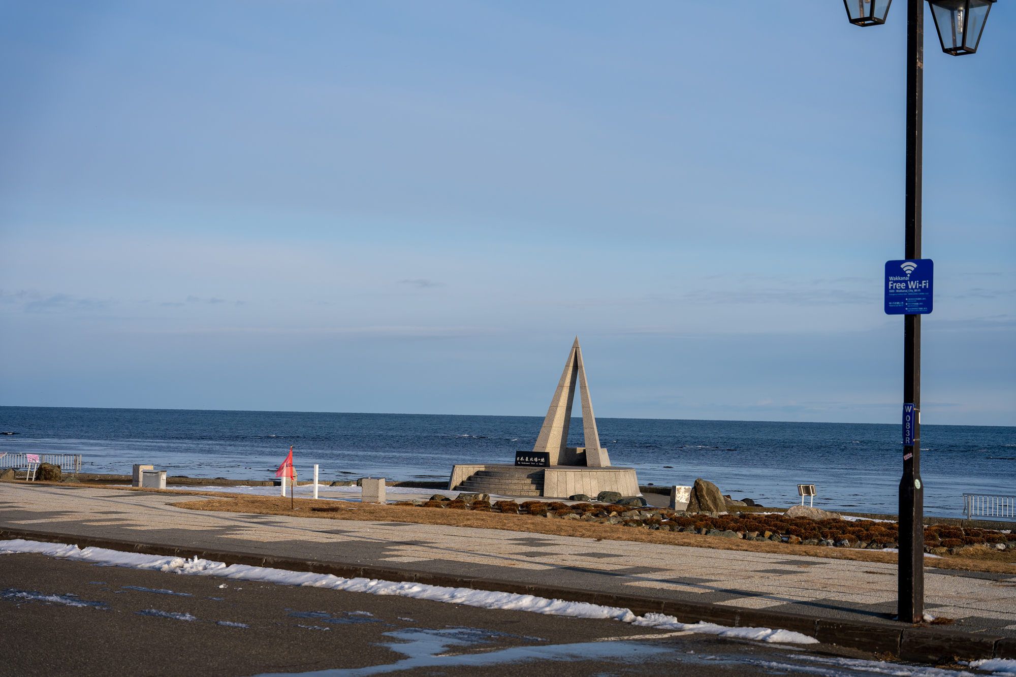 宗谷岬、昨年秋のタカの渡りにも来ているので見慣れた風景だ。積雪で丘陵のPまでは上がれなかった。しかし、岬の駐車場から5分で展望台に上がれる。
