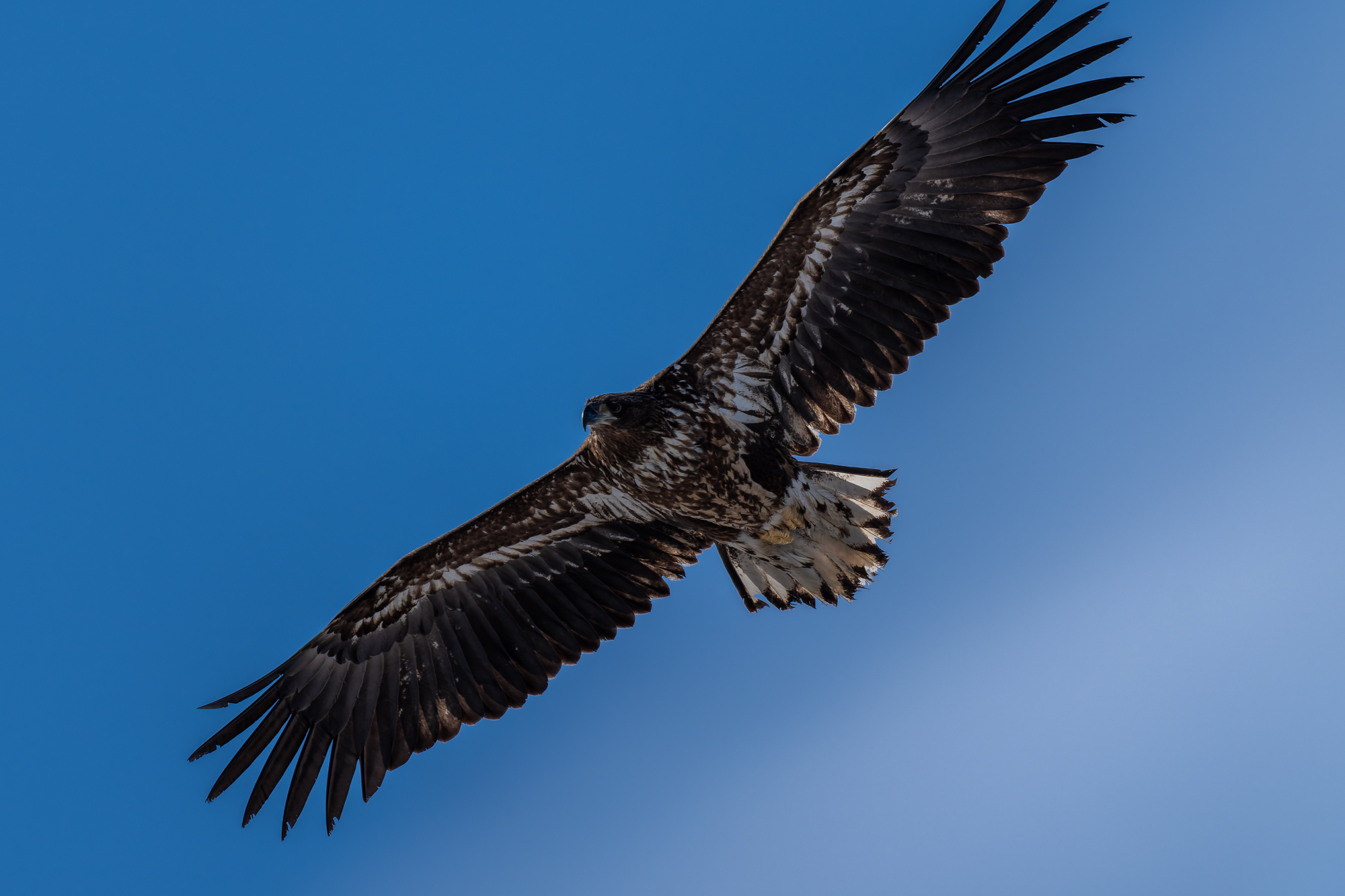 朝から風がよかったので、丘で高度を上げ渡る個体が多く、撮影は厳しかった。しかしこの若鳥は頭上を飛んでくれた。